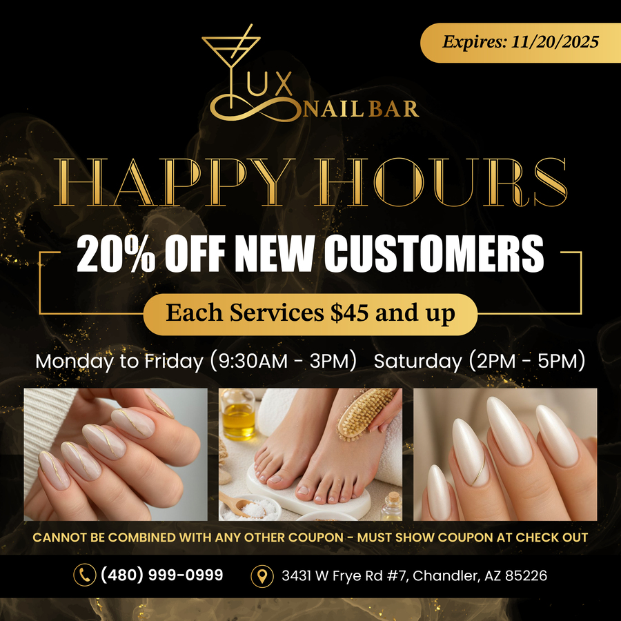 Welcome to Lux Nail Bar. Located at a beautiful place in Chandler, AZ 85226. Lux Nail Bar offers the ultimate in pampering and restoring your beauty with our whole-hearted, careful & professional staff. Comprehending customer is not an easy task. It’s even harder when it comes to nail art & caring services.